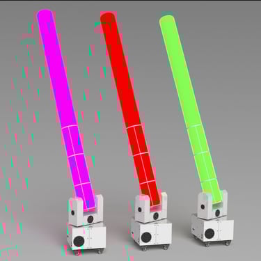 Dynamic Inflatable Light Tower (DILT) is a concept where air-inflated tube imbedded with RGB LEDs can move -dance- in two axis’s to achieve a harmonic movement. First axis being vertical tilt and second axis continuous rotation. DILT to be controlled in two ways: 1. Individually or grouped with a special app using Bluetooth mesh network, 2. Using the standard DMX512 communication protocol to be usable with other light effects. DILT to be used in shows, theatres, advertisement, and more.