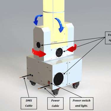 The challenge in this device was the high vibrations due to the flexible nature of the air inflated balloon and the high cantilever loads when tilting the tower. A mass-spring-damper model was established and carful calculations and simulations along with the vibration suppression algorithm resolved the vibration issues. Regarding the loads, a springs system was implemented to reduce the loads on the vertical axis servo motor and gearbox, the springs system reduced the loads by 70% at max angle. The device was designed for reliability to operate outdoor for days in GCC environment.