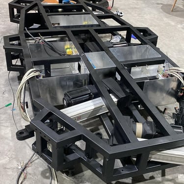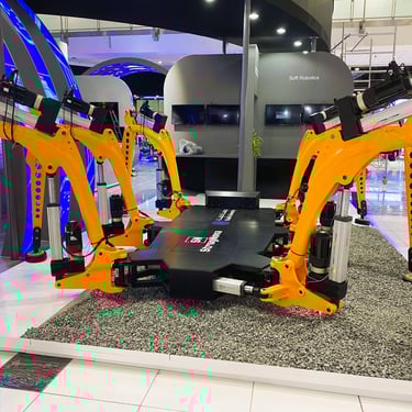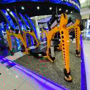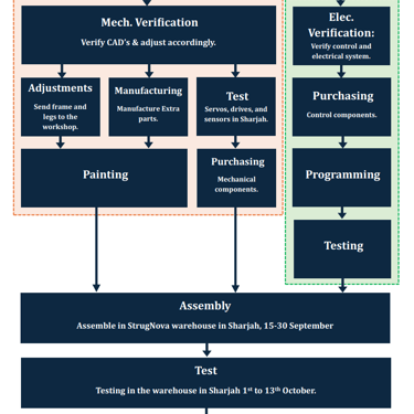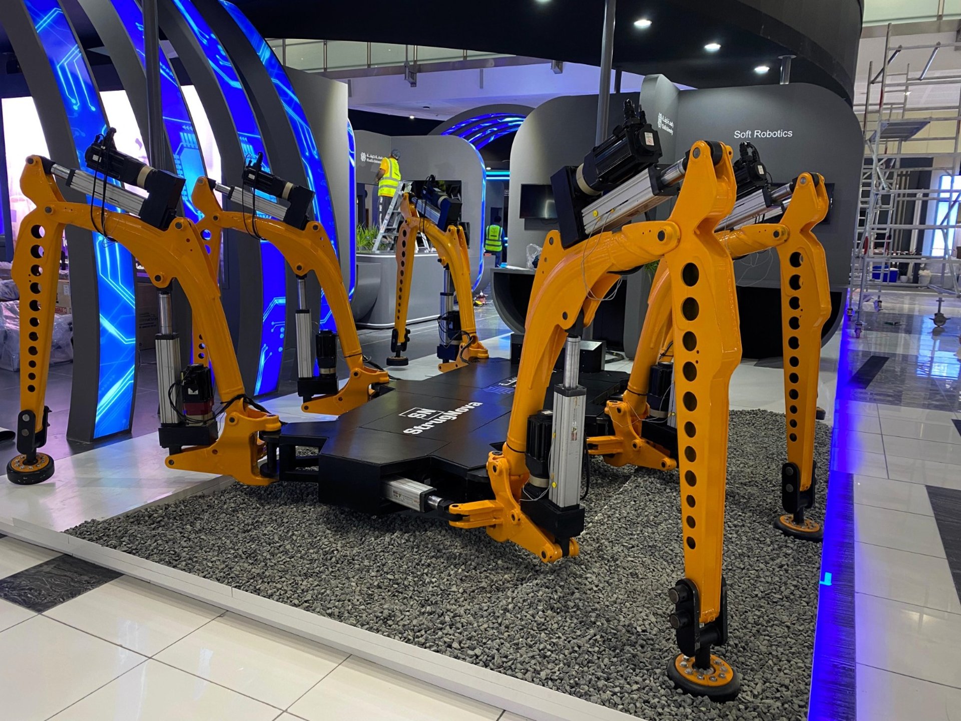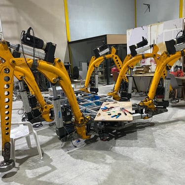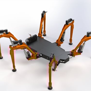 StrugNova collaborated with Khalifa University to redesign its all terrain hexapod robot. The project has been going from 12 years focusing on using gigantic hexapods to navigate hard-to-reach areas for rescue missions. It occupies 6x6 meters area and weighs about 3 tons and capable of carrying 1.5 tons. Its powered by servo motors and made of high strength steel in order to navigate disasters area such as after earthquakes and nuclear disasters. Advanced simulations and calculation were made to reach the best body to leg ratio to reach optimum performance and minimum loads and stresses on the structure.
