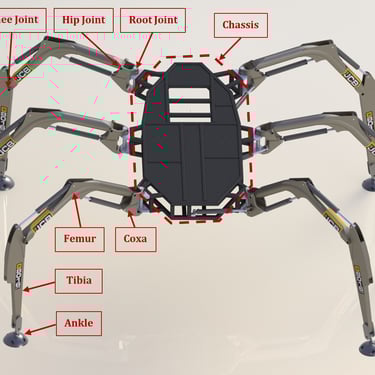 Coxa actuator connection locations was changed on both sides to increase the range of motion and reduce the torque required by almost 40%.